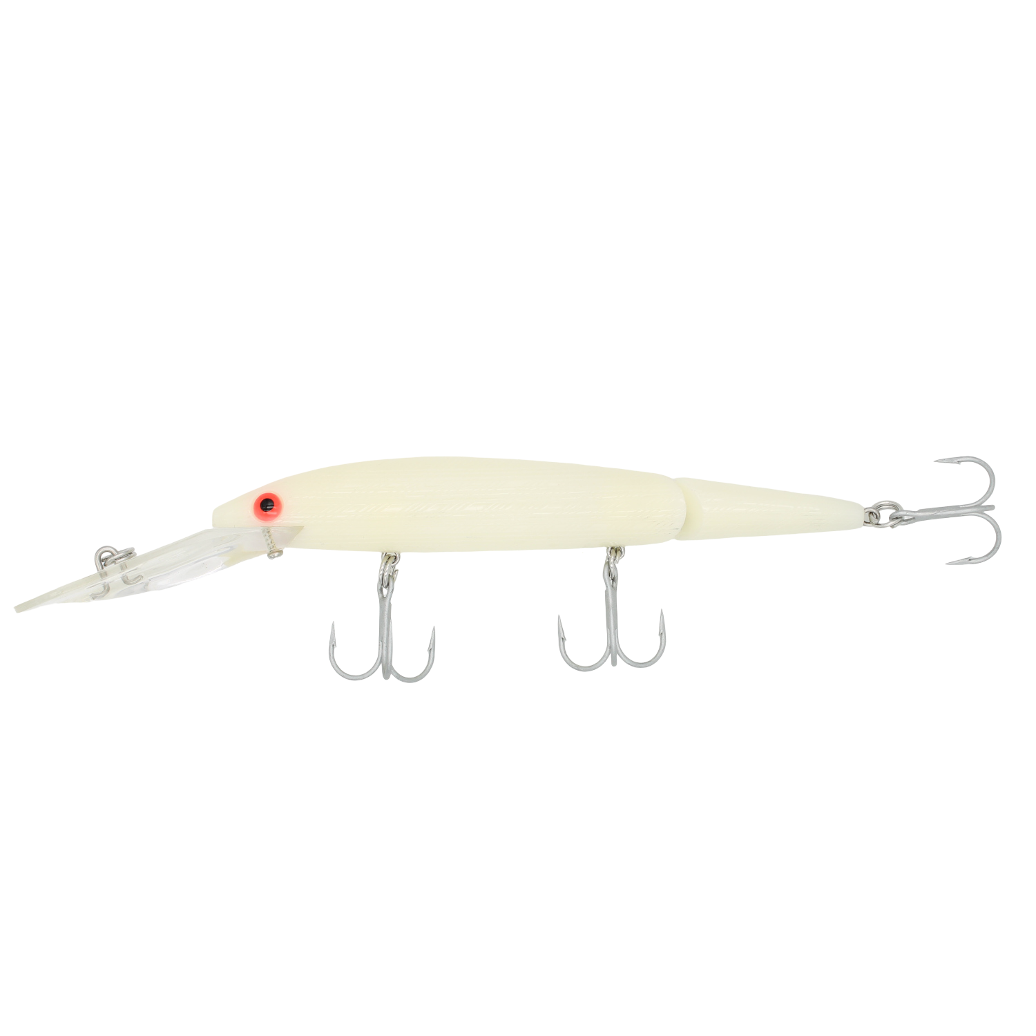 The Rebel Deep Jointed Minnow can be trolled for striper, and salmon, or twitched for cold weather bass. The big bill is tuned to run true right out of the package, and the super-strong hooks are corrosion-resistant to last a lifetime of fishing. These are a special run of this classic lure that is no longer in production. You won't find a better selection anywhere. Available in Rebel's most popular colors and a couple new patterns you haven't seen on this classic lure, such as bone white and chart/purple