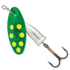 The Pixee Spoon features heavy construction that permits incredibly long casts and deep retrieves even in fast moving water. Egg sac insert adds natural element that drives fish wild. Plated brass with a hammered finish reflects more light increasing flash. Finished with premium VMC black nickel hook. Each spoon includes a matched siwash hook. Considered "Precious Metal" in Alaska.