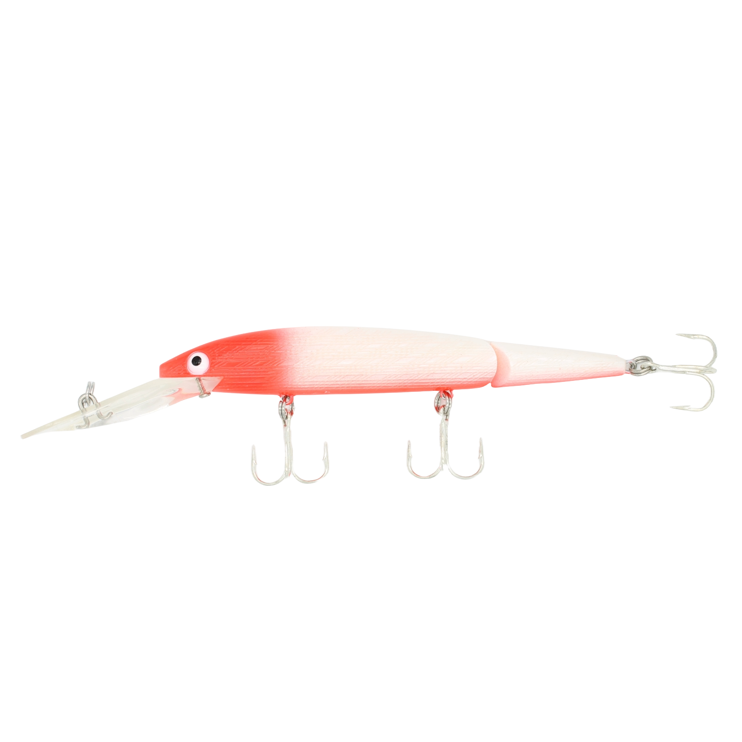 The Rebel Deep Jointed Minnow can be trolled for striper, and salmon, or twitched for cold weather bass. The big bill is tuned to run true right out of the package, and the super-strong hooks are corrosion-resistant to last a lifetime of fishing. These are a special run of this classic lure that is no longer in production. You won't find a better selection anywhere. Available in Rebel's most popular colors and a couple new patterns you haven't seen on this classic lure, such as bone white and chart/purple